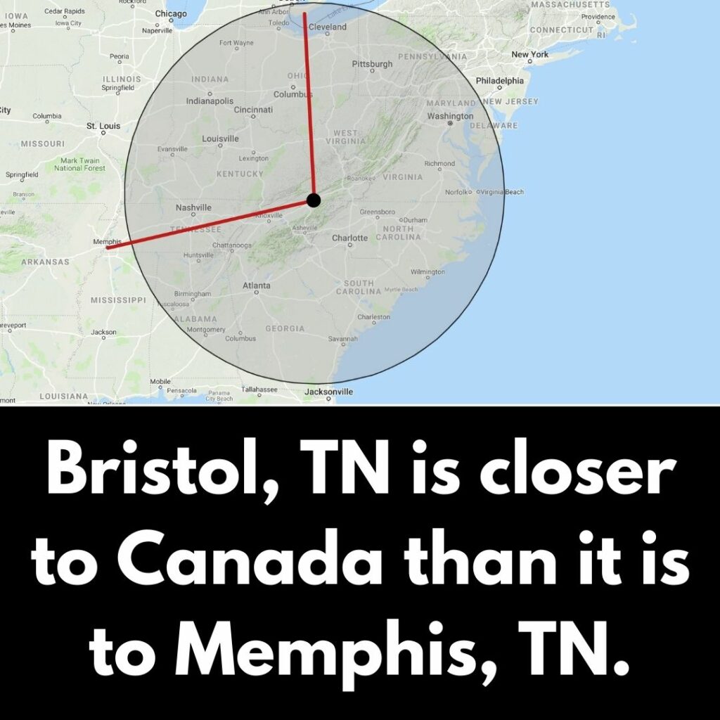 Bristol, situated near the Tennessee-Virginia border, lies in a position that makes the distance to the Canadian border shorter than the distance to Memphis, located in the southwestern corner of Tennessee. This really emphasizes the unexpected scale and distances that exist within the United States.