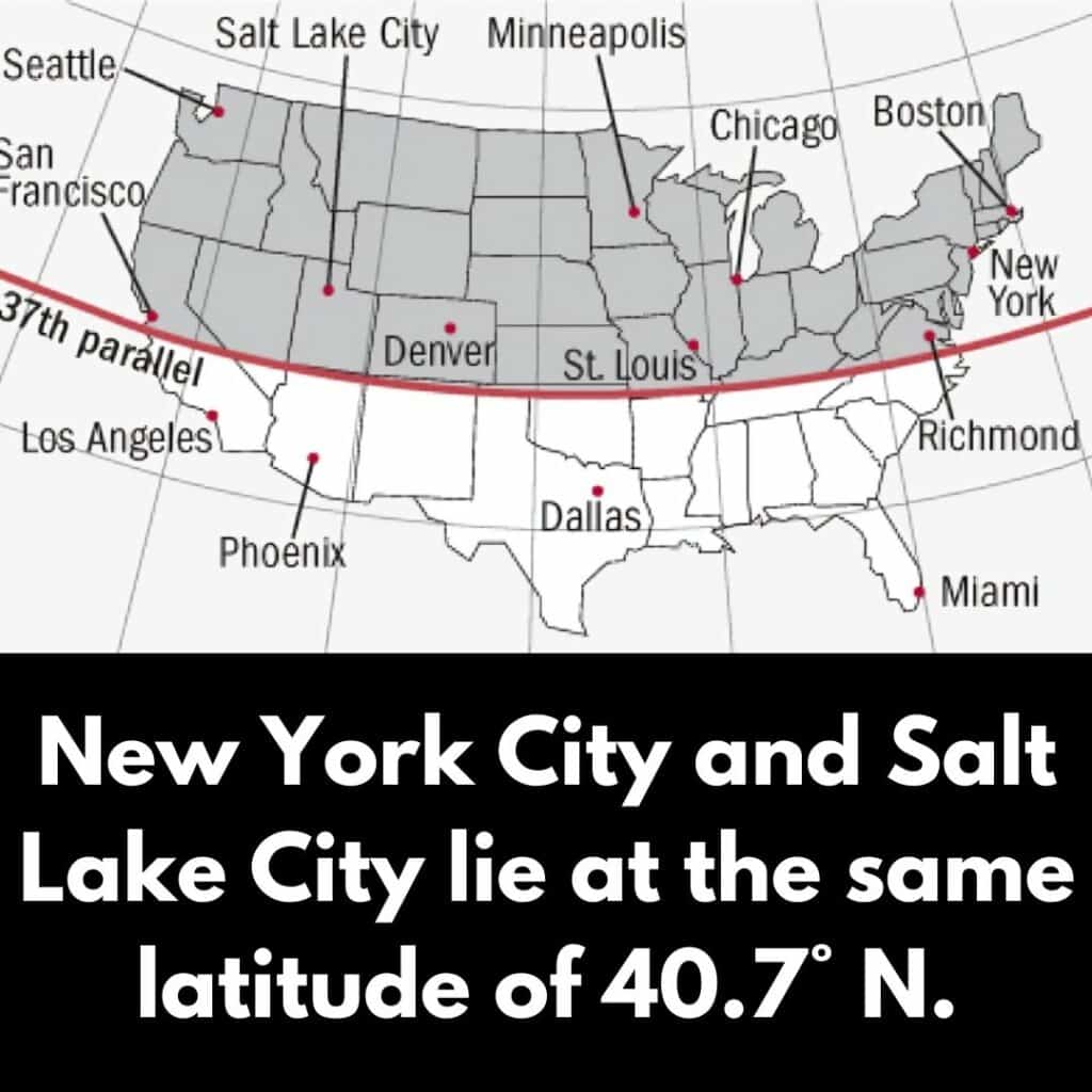 Despite being over 2,000 miles apart, this geographical coincidence highlights the diversity of climates and landscapes that can exist along the same latitude. While New York City boasts a bustling metropolis and a temperate climate influenced by its coastal location, Salt Lake City is known for its stunning mountain scenery and a more arid, continental climate.