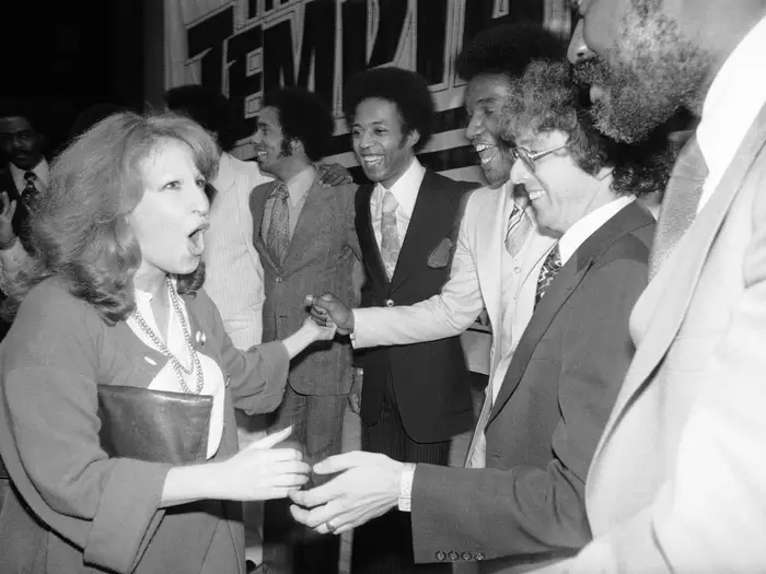 At a swanky soiree in 1977, the vivacious Bette Midler had the pleasure of rubbing shoulders with the legendary soul group, The Temptations. This wasn’t just any party, but a glamorous celebration marking The Temptations’ exciting new journey with Atlantic Records. Amidst the popping champagne and the electrifying atmosphere, Midler’s encounter with the iconic group added a touch of extra sparkle to the unforgettable evening.