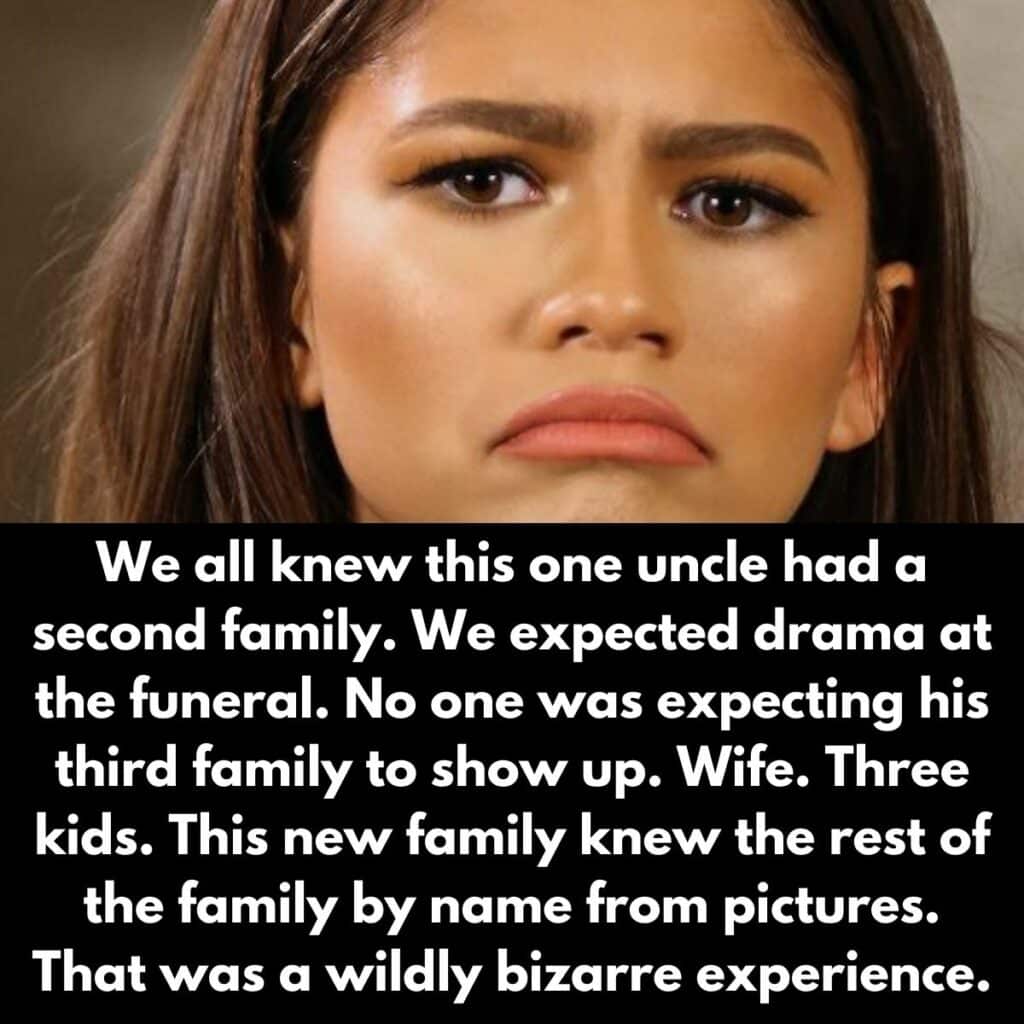 Knowing your uncle has a second family must be weird. How did his ‘first’ family feel about this? How did the other family feel? And why does it sound like they were all okay with that and accepted it as a fact of life? Maybe they weren’t okay at first but came to terms with that after a while.